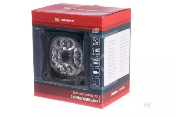 Arbejdslygte med indbygget kamera med en robust og vibrationssikker konstruktion, der muliggør montering på maskiner (f.eks. arm på en gravemaskine). For optimal beskyttelse er kameraet placeret i midten af lampen. Dette design giver et perfekt “synsfelt”.