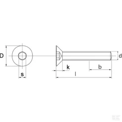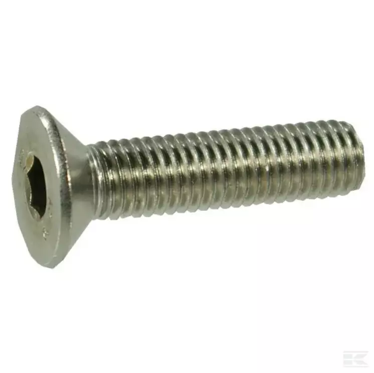 Forsænket skrue med sekskantstik. Bemærk: Disse kan leveres delvist eller fuldt gevindskåret. Dette er ikke angivet af DIN. |