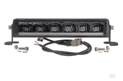 Kraftig LED lysbar med positions og fjernlys, som er godkendt til kørsel på vej ved parvis montering. Chassis af trykstøbt aluminium. linse og lygteglas i polykarbanat.